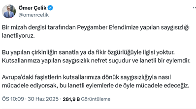- İslamcı terör örgütü İBDA-C ile bağlantılı Büyük Doğu Akıncılar Teşkilatı isimli grubun, Mizah dergisi Leman’da yayınlanan bir karikatürle ilgili “Hz. Muhammed tasviri” olduğu gerekçesiyle sosyal medyada linç kampanyası başlatarak dergi önüne çağrı yapmasının hemen ardından AKP Sözcüsü Ömer Çelik sosyal medya hesabında yaptığı paylaşımda “Bir mizah dergisi tarafından Peygamber Efendimize yapılan saygısızlığı lanetliyoruz. Bu yapılan çirkinliğin sanatla ya da fikir özgürlüğüyle ilgisi yoktur. Kutsallarımıza yapılan saygısızlık nefret suçudur ve lanetli bir eylemdir. Avrupa’daki faşistlerin kutsallarımıza dönük saygısızlığıyla nasıl mücadele ediyorsak, bu lanetli eylemlerle de öyle mücadele edeceğiz.” dedi. (30 Haziran)