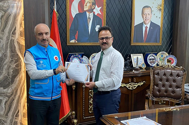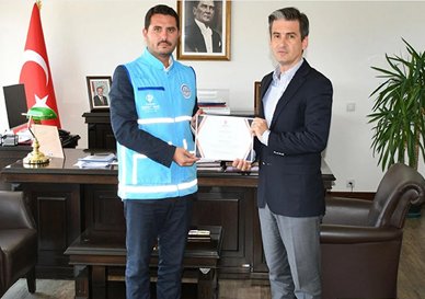 7. Kütahya Gediz Kaymakamı Hakan Alkan Diyanet İşleri Başkanlığı ve Türkiye Diyanet Vakfının Vekâletle Kurban organizasyonu kapsamında, makamında kurban vekâletini Türkiye Diyanet Vakfına vererek fotoğraf çektirdi. (3 Haziran)