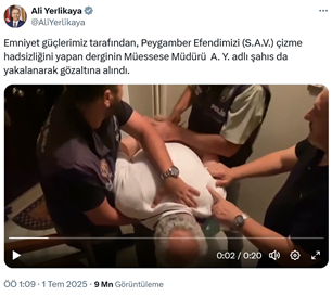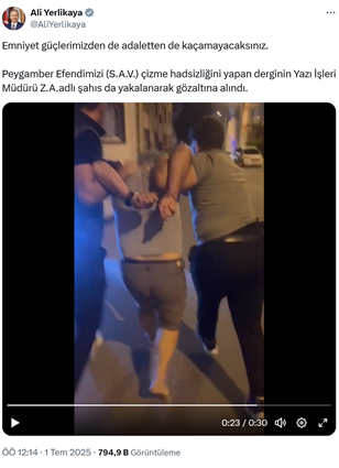 1. İslamcı terör örgütü İBDA-C ile bağlantılı Büyük Doğu Akıncılar Teşkilatı isimli grubun, Mizah dergisi Leman’da yayınlanan bir karikatürle ilgili “Hz. Muhammed tasviri” olduğu gerekçesiyle sosyal medyada linç kampanyası başlatarak dergi önüne çağrı yapmasının hemen ardından AKP’li İçişleri Bakanı sosyal medya hesabında “Peygamber Efendimiz (S.A.V.)’in hayasızca karikatürize edilmesini şiddetle kınıyorum. Yapılan basın özgürlüğü değildir. Yapılan ifade özgürlüğü değildir. Dini değerlerimizi aşağılayan, Müslümanların vicdanında derin yaralar açan bu tür girişimler provokasyon amaçlıdır ve buna cüret edenler hukuk önünde hesap verecektir. Peygamber Efendimizin karikatürünü yaparak hakaret eden bu zihniyeti lanetliyorum.” ifadelerinin ardından gece boyunca Leman Dergisi çalışanlarının ters kelepçeyle gözaltına alınmasını videolarla paylaşarak “Peygamber Efendimizin (S.A.V) karikatürünü yaparak nifak tohumları ekmeye çalışanları bir kez daha lanetliyorum. Bu alçak çizimi yapan D.P. adlı şahıs yakalanarak gözaltına alınmıştır. Bir kez daha yineliyorum: Bu hayasızlar hukuk önünde hesap verecektir.”, “Hadsiz derginin grafikeri C.O. adlı şahıs da yakalanarak gözaltına alındı. Sevgili Peygamberimize (S.A.V.) yönelik gerçekleştirilen bu alçaklık hukuk önünde hak ettiği cezayı görecektir.”, “Emniyet güçlerimizden de adaletten de kaçamayacaksınız. Peygamber Efendimizi (S.A.V.) çizme hadsizliğini yapan derginin Yazı İşleri Müdürü Z.A.adlı şahıs da yakalanarak gözaltına alındı.”, “Emniyet güçlerimiz tarafından, Peygamber Efendimizi (S.A.V.) çizme hadsizliğini yapan derginin Müessese Müdürü A. Y. adlı şahıs da yakalanarak gözaltına alındı.” ifadelerini kullandı. (30 Haziran)