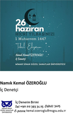 4. İstanbul Mimar Sinan Güzel sanatlar Üniversitesinde İç Denetçi olarak görev yapan Namık Kemal Özeroğlu, resmi e-posta adresinden üniversite çalışanlarına “Hicri yılbaşı” tebriği gönderdi. (26 Haziran)