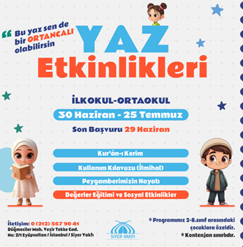 1. Türkiye’de Hizbullah adıyla faaliyet yürüten islamcı terör örgütüyle bağlantılı Siyer Vakfı, 2 - 8. sınıf öğrencileri için yaz okulu düzenlediğini internet sitesinde duyurdu. Program içeriğiyle ilgili “Kur’ân-ı Kerim atölyesinde Kur’ânımızla olan bağımızı güçlendirip, sureleri öğreneceğiz. “Sahabi” efendilerimizin üzerinden siyer yolculuğuna çıkıp, onların hayat hikayesiyle siyerin bir parçasını keşfedeceğiz. “Şahsiyet” atölyesinde yolumuzu aydınlatan izleri takip, bazı hayatlara misafir olacağız. “Yaşayan Sünnet Adab-ı Muaşeret” atölyesinde davranışlarımızı güzelleştirmeyi hedefliyoruz. Çünkü güzel ahlak yaşayan bir sünnettir. “Zamanı Aşan Hikayeler” ile Kuran-ı Kerimde geçen önemli olaylara şahitlik edip, “Ayete konu olmuş hayvanlar” ile yeni bir aleme tanıklık edeceğiz.” ifadeleri yer aldı. (1 Haziran)