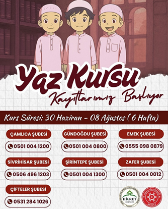 çocuklarımızı yaz Kur’an kurslarımızla buluşturalım.” ifadeleri yer aldı. (20 Haziran)