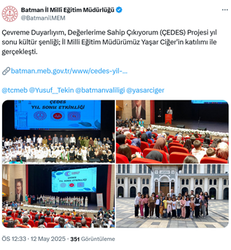 5. Batman İl Milli Eğitim Müdürlüğü’nün, Gençlik ve Spor Bakanlığı ve Diyanet İşleri başkanlığı ile birlikte düzenlediği ÇEDES kapsamında düzenlediği yıl sonu kültür şenliği programında, küçük kız çocuklarının eline oyuncak silah verilerek Gazze’deki olaylar canlandırıldı. Sözcü’den Müslüm Evci’nin haberine göre programda konuşmaların ardından Kültür Şenliği, Gazze temalı pandomim gösterisi ve oratoryo sunumu yapıldı. Gösteri sırasında asker kıyafeti giydirilen çocuklara, ellerine oyuncak silah verilip katliam canlandırıldı. Programda İl Milli Eğitim Müdürü Yaşar Ciğer konuşma yaptı. (16 Mayıs)