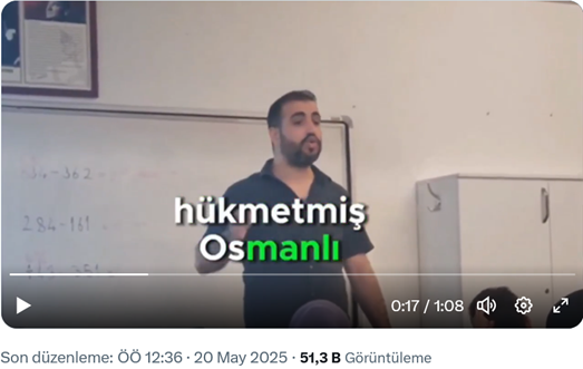 9. İstanbul Bağcılar'daki Arif Nihat Asya İlkokulu'nda sınıf öğretmeni olan ve daha önce “Çocukken şort giydir, mini etek giydir! Büyüdüğünde tesettüre girmesini bekle (ME)” başlığıyla sosyal medyada öğrencilerin kıyafetlerini hedef alarak şort giyilmesini “edepsizlik” olarak nitelendiren Aytaç Demir’in “Osmanlı Devleti maalesef ki yıkılmış. Niye yıkılmış biliyor musunuz? 1. Dünya Savaşı'nda girdiği cephelerde zayıf olduğu için değil, içimizdeki hainler tarafından arkasından vurulduğu için” ifadeleriyle ‘ders’ anlattığı görüntüler ortaya çıktı. Sosyal medya platforumu YouTube'da “Senin Öğretmenin ile Mutlu Aile Okulu” kanalı üzerinden videolar paylaşan Demir’in “ilkokul öğrencileri dedeleri Osmanlıyı bilmesin mi?” isimli videosunda çocuklara “Osmanlı İmparatorluğu'nun Milli Mücadele kahramanları tarafından yıkıldığını” dolaylı yoldan anlattığı görüldü. Çocuklara “Türkiye Cumhuriyeti Devleti'nden önce hangi devlet vardı?” sorusunu yönelten Demir “Osmanlı Devleti maalesef ki yıkılmış. Niye yıkılmış biliyor musunuz? 1. Dünya Savaşı'nda girdiği cephelerde zayıf olduğu için değil, içimizdeki hainler tarafından arkasından vurulduğu için. Osmanlı Devleti yıkılınca zalim devletler Anadolu'nun içine kadar gelmişler, Anadolu'yu işgal etmişler. Bunu duyan neneleriniz dedeleriniz ellerinde taş tüfek, ne bulursalar artık... ellerine ne geçerse onları kullanıp o zalim devletleri o işgalci devletleri denize kadar dökmüşler.” ifadelerini kullandı. (20 Mayıs)