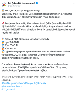 4. AKP’li Cumhurbaşkanı R.T. Erdoğan’ın oğlu Bilal Erdoğan’ın mütevelli heyeti başkanı olduğu İlim Yayma Cemiyeti Darıca Şubesinin düzenlediği “100 Hadis Ezbere Okuma Yarışması” AKP’li Kocaeli Darıca Beeldiyesi Adnan Menderes Kültür Merkezinde yapıldı. Finale kalan 13 öğrenciye umre ödülü verildi. (22 Mayıs)