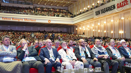 2. Diyanet İşleri Başkanlığı Kuzey Ankara Külliyesi Takva Kongre Merkezi’nde İslamcı terör örgütü Hizb-ut Tahrir’le bağlantılı Köklü Değişim Dergisi tarafından “Büyük Gazze Konferansı” adı altında etkinlik düzenlendi. Sunuculuğunu Köklü Değişim İstanbul Temsilcisi Muhammed Emin Yıldırım’ın yaptığı etkinlik “Dünya Kur’an-ı Kerim Okuma Birincisi” ve İmam Hatip Mustafa Özcan Güneşdoğdu tarafından Kuran tilavetiyle başladı. Programda konuşma yapan İslamcı terör örgütü Hizb-ut Tahrir Türkiye Medya Bürosu Başkanı Mahmut Kar, “Gazze dâhil bugün yeryüzündeki tüm işgallerin son bulmasının kalıcı ve gerçek çözümü bölünmüş ve parçalanmış olan İslam ümmetinin vahdetini sağlayacak ve yeniden Müslümanları tek bir çatı altında toplayacak olan Raşidi Hilafet’in kurulmasıdır” dedi. Etkinlikte, Türkiye’de Hizbullah adıyla faaliyet yürüten İslamcı terör örgütü ve İslamcı terör örgütü Hizb-ut Tahrir’le bağlantılı yapı ve isimler yer aldı. İslami Dayanışma Platformundan Necmettin Irmak, Medrese Âlimleri Vakfı Başkanı Tayyip Elçi, Siyer Vakfı Başkanı Muhammed Emin Yıldırım, Peygamber Sevdalıları Vakfı Onursal Başkanı Mehmet Göktaş, Dünya Müslüman Âlimler Birliği Başkanı Ali Karadaği gibi isimler konuşma yaptı. Diyanet İşleri Başkanlığı Başkanlık Müşaviri Abdürrezzak Ateş de etkinlikte yer alarak yaptığı konuşmada, Köklü Değişim’e teşekkür etti. Köklü Değişim yazarlarından Abdullah İmamoğlu da konuşmasında “Ey kâfirler sizler kerih görseniz de Hilafet kurulacaktır. Çünkü bu Rasul’ün müjdesi ve Allah Subahehu ve Teâla’nın vaadidir. Sizler Hilafet gerçeğiyle elbet yüzleşeceksiniz. Sonra ne mi olacak? Ve sonra yenilecek ve cehenneme sürüleceksiniz” ifadelerini kullandı. Salonda program boyunca, “Hilafet Kurulsun, ‘İsrail’ Yok Olsun”, “Tek Ümmet Tek Devlet Tek Çözüm Hilafet”, “Hayber Hayber Ya Yahud, Ceyşu Muhammed Sevfe Yeud” (Hayberi Hatırlayın Ey Yahudiler! Muhammed'in Ordusu Geri Dönecek)”, “Ordular Aksa’ya” sloganları atılarak tekbirler getirildi. (4 Mayıs)