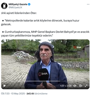 14. Şırnak’taki Jirki aşireti liderlerinden birinin evinde üç hilalli asılı MHP bayrağının olduğu görüntüler sosyal medyada paylaşılırken, aşiretin liderlerinden Cemil Öter “Öncelikle bu süreci başlatan ve inşallah sonucunu da getirecek olan Cumhurbaşkanımıza, MHP Genel Başkanı Devlet Bahçeli'ye ve aracılık yapan tüm yetkililerimize teşekkür ederim. Ayrıca vefat eden Sırrı Süreyya Önder'in hakkını yememek gerek onun bizde çok yeri var. Onu rahmetle anıyorum” dedi. (13 Mayıs)