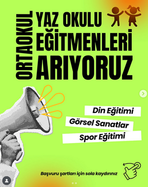 4. AKP’li Cumhurbaşkanı R.T. Erdoğan’ın oğlu Bilal Erdoğan’ın yöneticilerinden olduğu TÜGVA, MEB’e bağlı okullarda düzenleyeceği “yaz okulları” için Türkiye’nin farklı illerinde eğitmen ilanı verdi. İlanda, “kimler başvurabilir” başlığının altında aranan özellikler “ilahiyat lisans mezunları, ilahiyat ön lisans mezunları, ilahiyat 3. Sınıf ve üzeri, imam hatip lisesi mezunları, lisans mezunları” olarak sıralandı. (13 Mayıs)