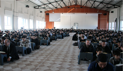 44. Kütahya’da Şehit Selim Cansız Anadolu İmam Hatip Lisesi Fen ve Sosyal Bilimler Proje Okulu’nda spor salonu toplu Kuran okuma mekânına dönüştürüldü. Okulda “mukabele geleneği” başlattıklarını söyleyen müdür İsmail Baş, “İnşallah Ramazanın son güne kadar devam ettireceğiz. Bu ayda ders saatlerinde bir düzenlemeye gittik. Ders saatimiz 14.50’de bitiyor ve hemen mukabeleye geçiyoruz. Şu an 534 öğrencimiz ve 45 öğretmenimiz var. Öğretmenlerimizin bazen hepsi olmasa da katılmaya özen gösteriyorlar. Katılımın çok olması için son saate aldık. Öğrencilerimize de bu konuda telkinlerde bulunduk. Katılmayan öğrencimiz yok denecek kadar az.” dedi. (23 Şubat)