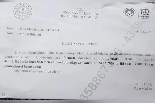 8. Milli Eğitim Bakanlığı'nın 81 ile gönderdiği “Ramazan Ayı Etkinlikleri” yazısıyla okul öncesinden liseye kadar tüm kademeleri kapsayan ramazan ayına yönelik etkinlik programı başlatıldı. Ortaokul ve liselerde “İftarda Konuşalım” başlıklı söyleşiler yapılacak. Nefes'ten Dilan Kutlu'nun haberine göre, “Türkiye Yüzyılı Maarif Modeli” kapsamında hazırlanan yazıda, Milli Eğitim Temel Kanunu’nun 2’nci maddesi gerekçe gösterilerek “milli ve manevi değerleri güçlendirme” vurgusu yapıldı. Temel Eğitim Genel Müdürlüğü’nün hazırladığı rehbere göre henüz zorunlu din eğitimi çağında olmayan 4–6 yaş grubu çocuklar öğretmenleri eşliğinde camiye götürülecek. Ziyaret öncesinde Sultan Ahmet Camii örneği üzerinden tanıtım yapılacak. Okul öncesi öğrencilerden aileleriyle “Ramazan hazırlığı yaparken ya da dua ederken” fotoğraf çektirmeleri ve okula getirmeleri istenecek. Fotoğraf getiremeyen çocuklar sınıfta resim çizecek. Çocuklara “Ramazan topu”, “iftar”, “sahur” gibi kavramlar bilmece yöntemiyle sorulacak; iftar sofrasının nasıl kurulacağı öğretilecek. Bakanlık, öğretmenlerden her haftanın temasına ilişkin etkinlikleri “İzleme ve Değerlendirme Formu”na işlemelerini istedi. Her hafta gerçekleştirilen etkinliklere dair bilgiler, takip eden haftanın ilk iş gününde forma girilecek ve tüm başlıklar eksiksiz doldurulacak. Formda “Okul Türü Bilgisi”, “Yapılan Etkinlik Sayısı” ve “Katılımcı Sayıları (öğrenci, veli, öğretmen)” başlıkları yer alıyor. Böylece ramazan etkinliklerinin sayısal olarak da takip edilmesi planlanıyor. İlkokul öğrencileri için cami ziyareti sonrası doldurulmak üzere “Cami Ziyareti Gözlem Formu” hazırlandı. Formda, “Camide gördüklerim neler?”, “Ramazan’da camide neler yapılıyor?”, “Cami ziyaretinde neler hissettim?”, “Bugün ne öğrendim?”, “Camide nasıl davrandım?” gibi çoktan seçmeli ve yoruma dayalı sorular yer aldı. Öğrencilerden ayrıca ramazan boyunca günlük tutmaları istendi. Örnek olarak seçilen ramazan sayfası sınıf panosunda sergilenecek. Öte yandan, okullarda “Ramazan sofrası” kurulacak, ramazan pidesi, hurma ve davulcu gibi görseller üzerinden etkinlikler yapılacak. Çalışmalar “Ramazan’da Cami” köşesinde sergilenecek. (15 Şubat)