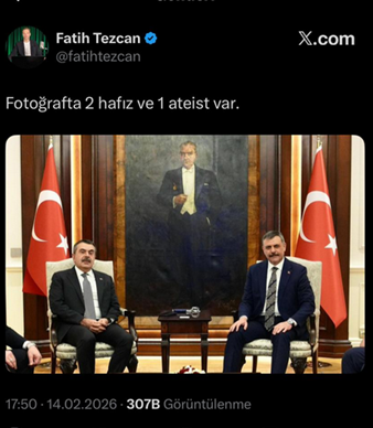 14. Analiz Tv adındaki Youtube kanalında program yapan Cumhuriyet ve Atatürk düşmanı Fatih Tezcan, sosyal medya hesabından, AKP’li Milli Eğitim Bakanı Yusuf Tekin ile AKP’li İçişleri Bakanı’nın makamda fonda Atatürk resmi olan fotoğrafını “fotoğrafta 2 hafız ve 1 atesit var” ifadeleriyle paylaştı. (14 Şubat)