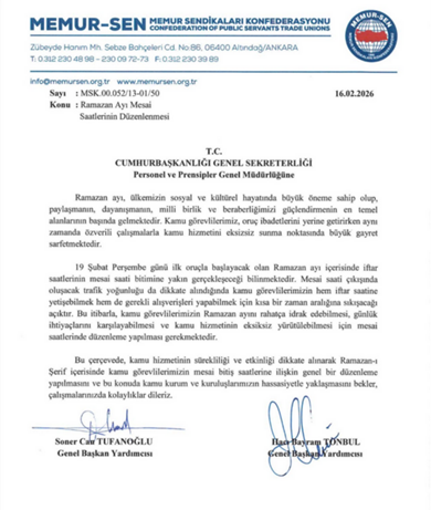 19. Siyasi iktidara yakın Memur Sen ve Kamu Sen, Personel ve Prensipler Genel Müdürlüğü'ne baş vurarak kamuda mesai saatlerinin ve sürelerinin iftar saatlerine göre düzenlenmesini istedi. (16-20 Şubat)