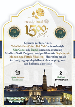 2. Menzil cemaati, İstanbul’da Ve Diyarbakır’da Diyanet’e bağlı camilerde buluşmalar düzenledi. İstanbul Sultangazi’deki camide düzenlenen tövbe seansında Menzil’in liderlerinden Muhammed Mubarek Elhüseyni namaz kıldırırken, Diyarbakır Ulu Camide de yine Elhüseyni’nin katılımıyla Mevlidi Nebi adı altında program düzenlendiği duyuruldu. (3 Şubat)